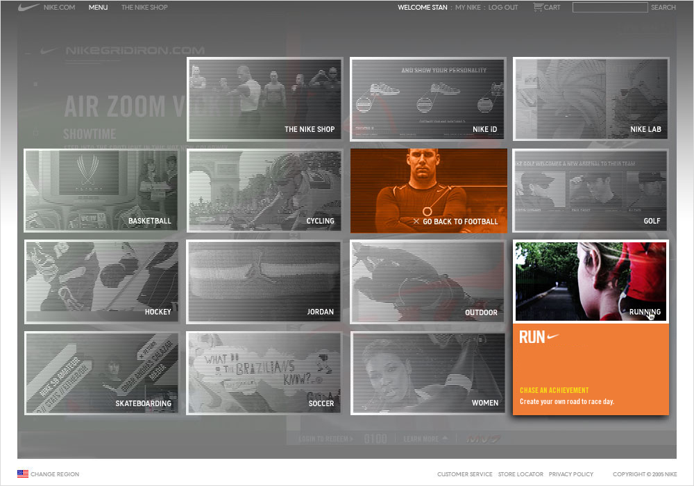 Nike was looking to aggressively maximize sales online without sacrificing brand equity. With a catalog of key properties—running, women, basketball, football, soccer, etc., each with its own story to tell—it demanded more than existing systems to deliver value. Even with product extensions like Nike-ID where you can custom design your shoe or Nike Lab for unique ventures in apparel and footware, creating an online experience that seamlessly integrates transactional function without compromising these property narratives required meticulous care.