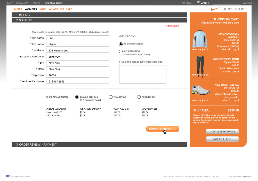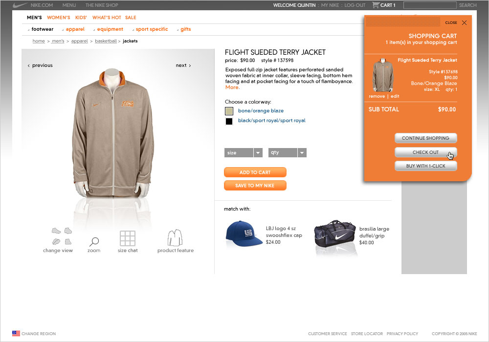 An aspect of shopping is trying things on to validate choices while finding complementary items to live the fuller Nike experience. By giving people simple tools beyond filtering products—like a changing room—a level of self driven personalization can increase shopping activities. The effect results in a more assured purchase while expanding sales for Nike. Couple features like these with a streamlined three-step checkout that reduce transaction speeds and you create a happier customer with more time to enjoy the fun part of shopping and less time processing payments.