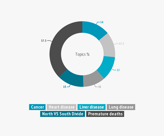 From press to broadcast to blogs, people in every part of England were discussing the topic of premature mortality, especially in boroughs with critical health challenges. Major press publications like The Guardian, The Times, The Telegraph, and The Daily Mail, covered the launch with bold headline-grabbing urgency. Major broadcast channels like BBC, Sky News, and ITV led news coverage with knowledge gleaned from Longer Lives; additionally presenting dedicated segments with health experts, government directors, and local citizens. Regional and public health related blogs also joined the conversation. Per Longer Lives’ journey strategy, the press/media reported the critical nature of the matter.