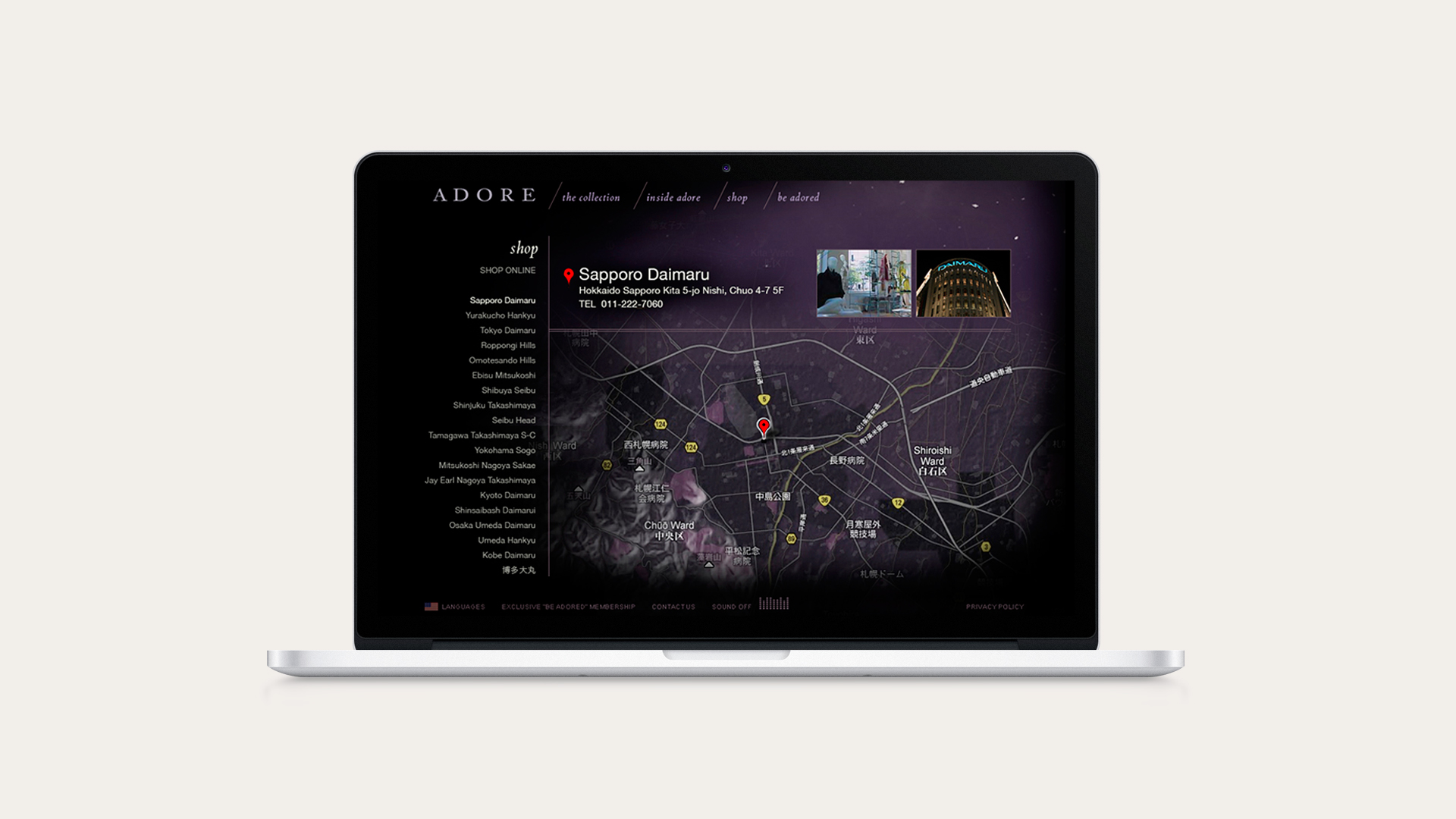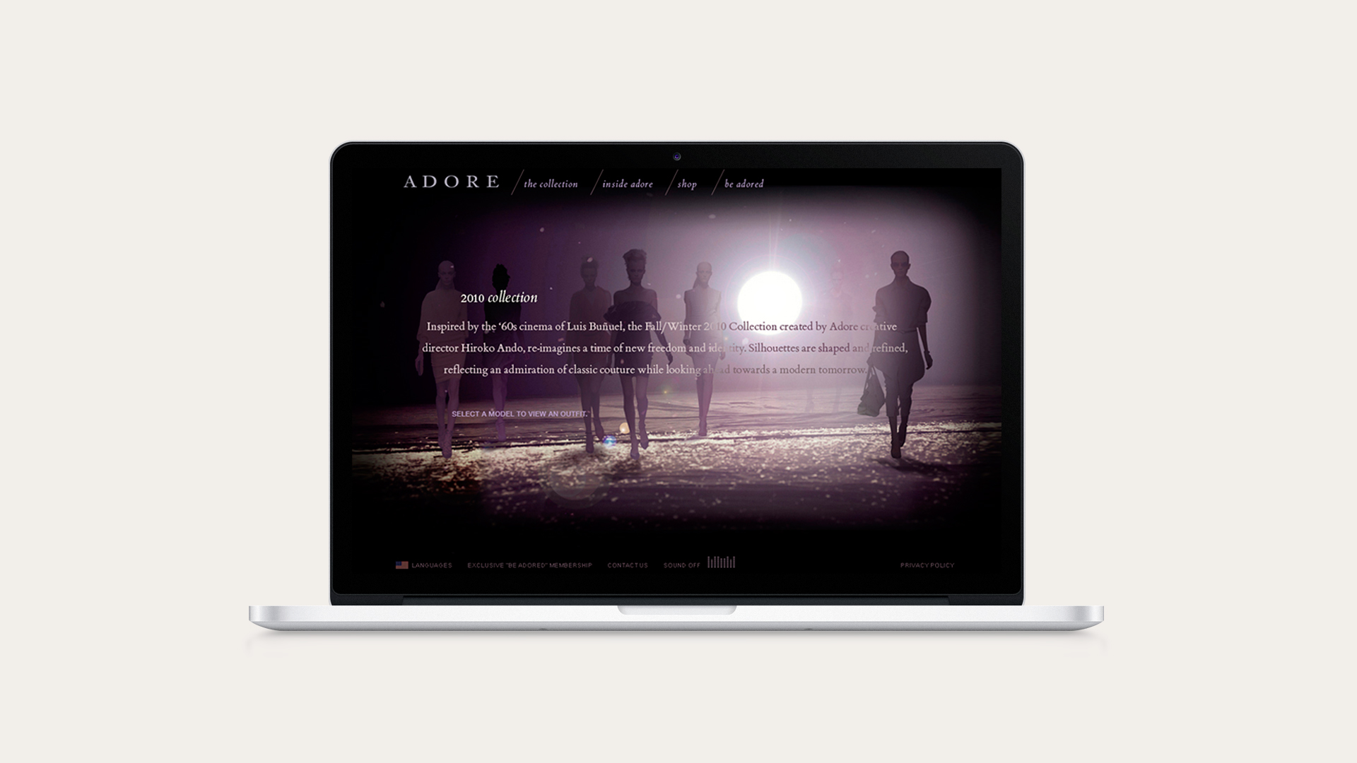 Japanese fashion label Adore creates accessible luxury for the Japanese market. To increase brand awareness and attract new customers, the website creates an ambient world for the cosmopolitan woman each season. Rather than present the designs statically, the Fall/Winter 2010 collection takes advantage of video to interactively flaunt the style of the brand. A peak inside the Adore atelier connects visitors to the people, design process, and craftsmanship behind the clothes. To activate influencers, a special relationship building program let’s them opt-in to special design previews, event invites, and personalized information.
