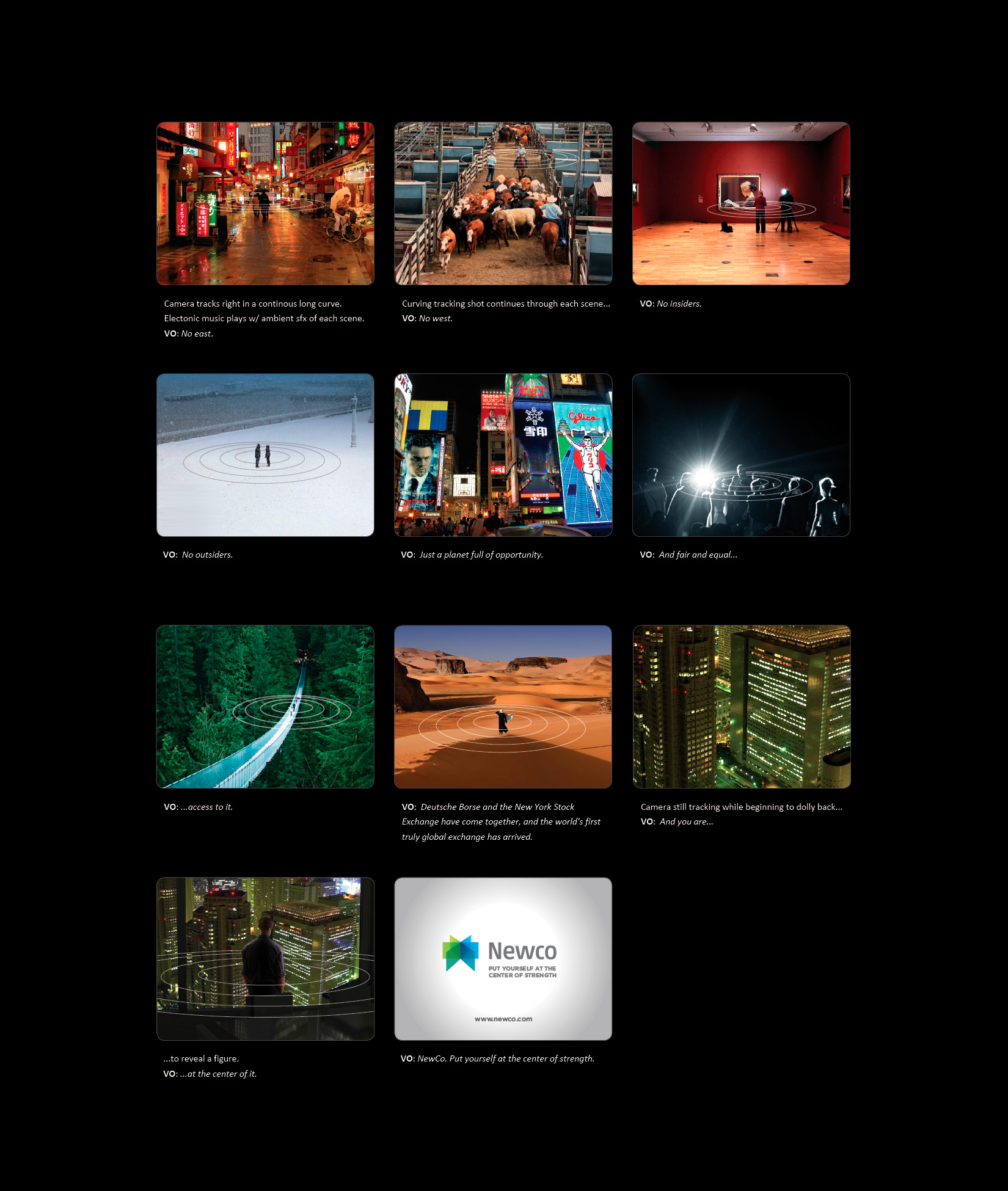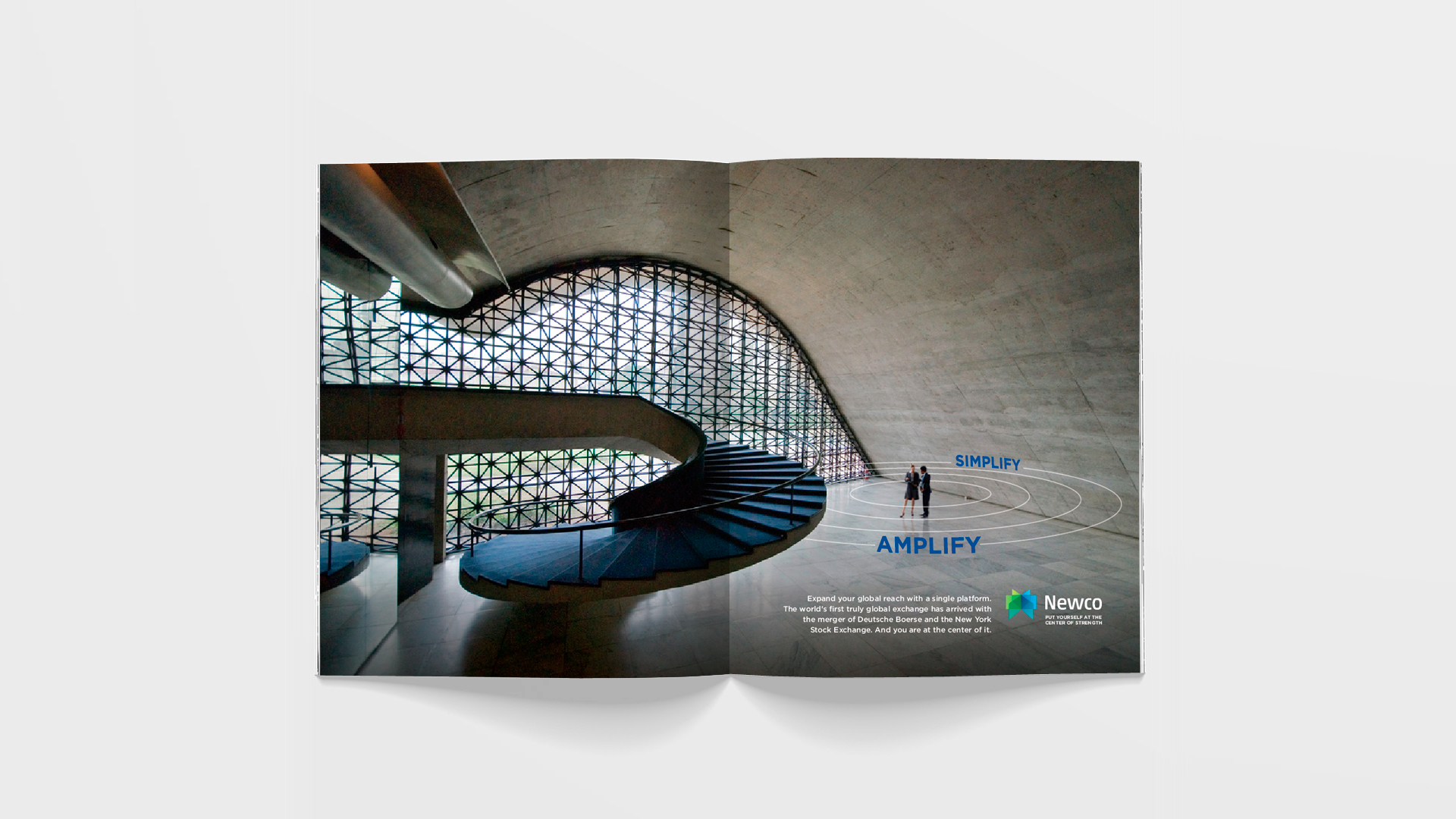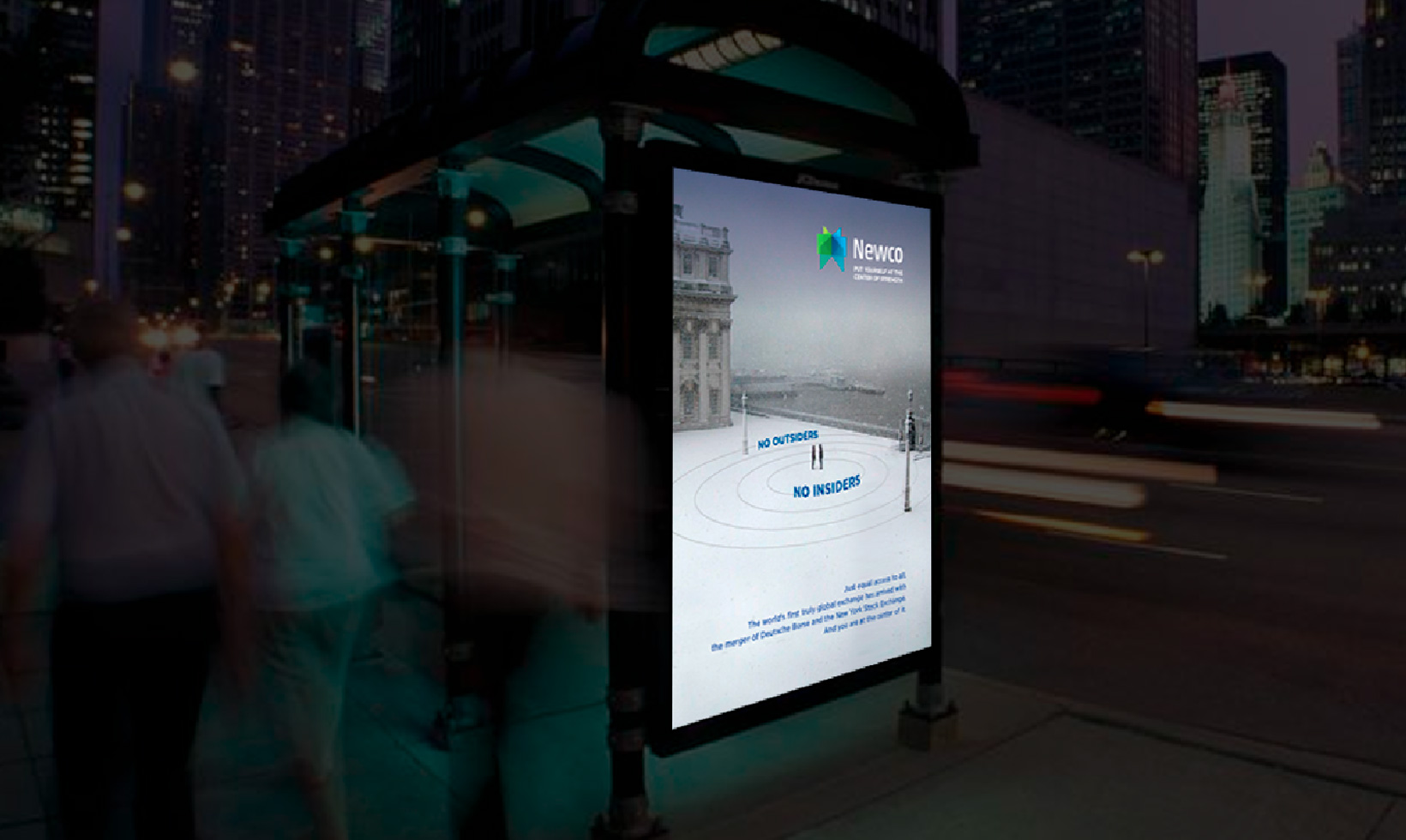 To pitch the pending merger of two of the world’s largest stock exchange platforms, a series of (re)branding ideas begins to herald a shift in paradigm. It foreshadows the next financial market evolution where notions such as “inside vs. outside” or “east vs. west” become 20th century artifacts in growing and managing businesses and investments. Using a surrogate name for the merging entities, teasers and launch ads message a new leveled playing field in finance on a global scale. Print, TV, OOH as well as digital ambient pieces promote the notion that this shift is now centered on the individual, giving them access to achieve unimaginable goals.