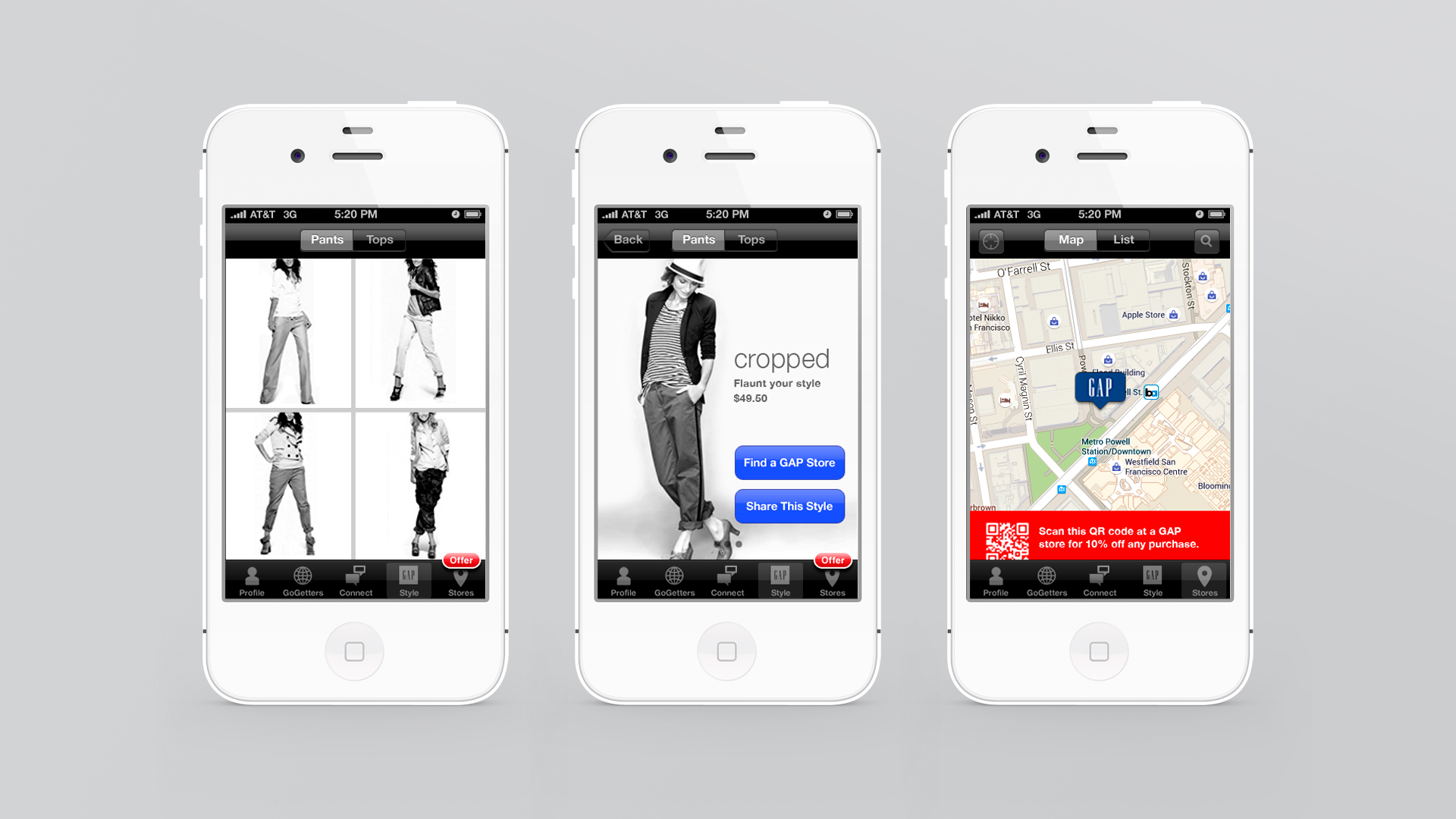 GAP has always been a reliable place to get the basics: t-shirts, khakis, pullovers, etc. Shops like H&M, Forever 21, and Zara, as well as niche designer jean brands, have begun to drastically erode their market share. To recapture the women’s segment while promoting their emphasis on pants (vs. just jeans) and drive traffic to their retail stores, GAP hopes to empower women by making it stylish to wear pants while at work or play. The GoGettter mobile app gives the confident woman a tool to find a look, locate an after-work scene where they can flaunt it, and flirt their ways into people’s heart in GAP style.
