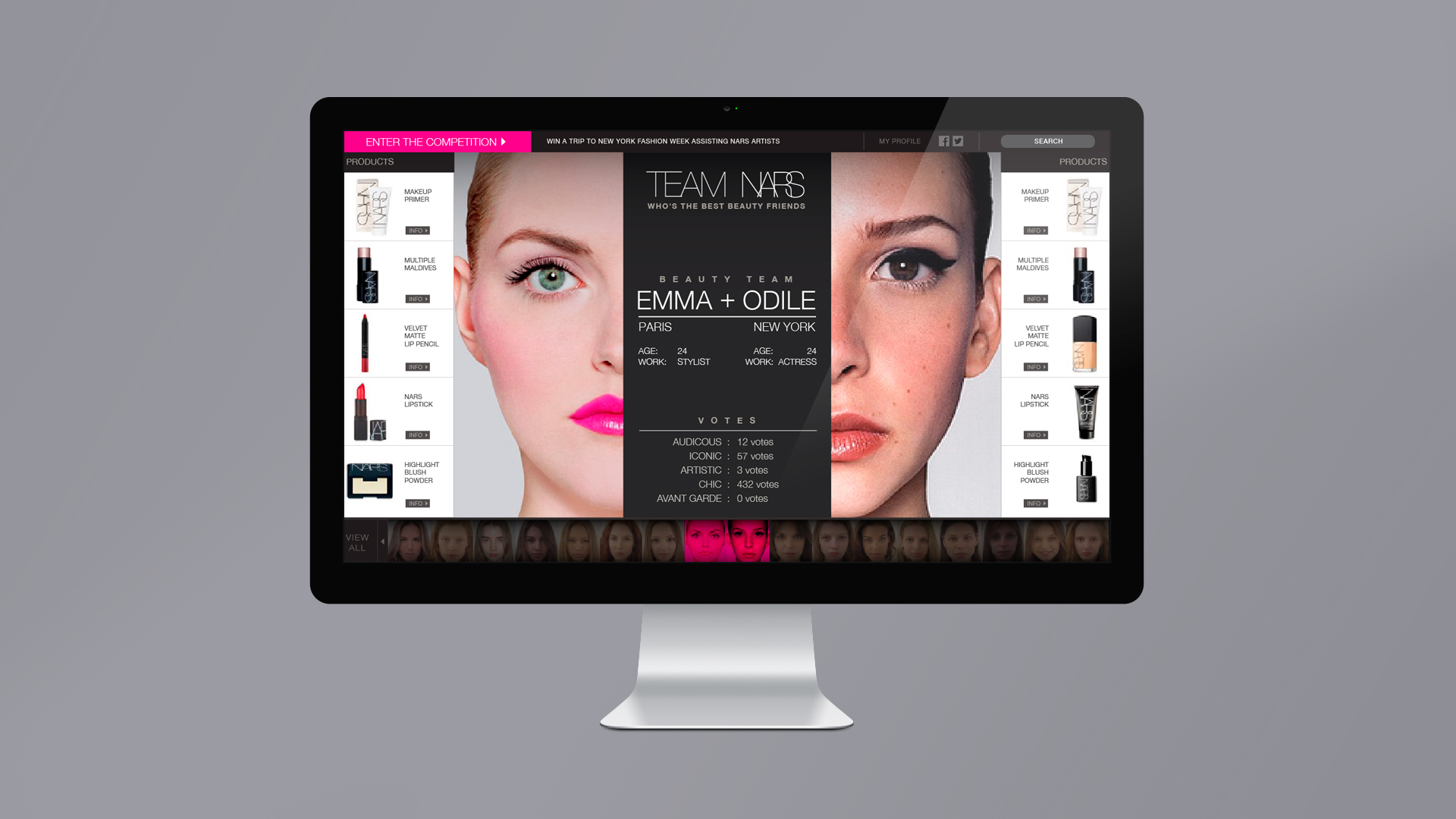 Given the ubiquity of social media platforms, it’s common for people to look to others to discover new options, get insight, or validate decisions. This socialization of choices galvanizes shared perspectives and values, ultimately forming tribes. NARS is luxury line of cosmetics founded on the belief that beauty lies in expressing one’s true character, not on genetic gifts. To promote, connect, and unify people who live the NARS philosophy, a site for the NARS “Citizens” offers to give voice to the community while empowering each citizen to share, discover, and garner confidence to express their true selves. Using social-gaming strategies, a special launch competition invites friends to team-up and express their beauty skills. Winners are voted by the community, with a grand prize trip to NY’s Fashion Week to meet Françios Nars and assist NARS artists.